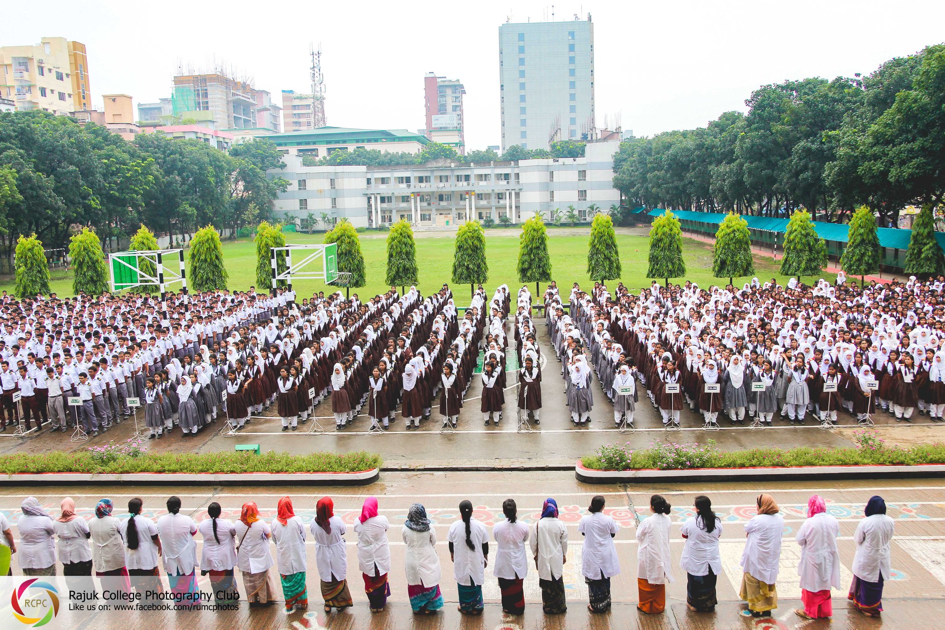 The magnificently designed educational institution named Rajuk Uttara Model College stands proudly on the Dhaka-Mymensingh Road close to Azampur Bus Stand. It is situated at Sector-6 of Uttara Model Town about one km. from the Hazrat Shahajalal International Airport offering an eye catching view to the passersby. With an accommodation of about 8000 students in two shifts, the college is spread over almost four acres of land with a spacious playground in front of the main Academic Building. The absence of a truly standard educational institution in the area had led to the idea of establishing a college of very high standard in the line of reputed Public Schools & Colleges/Cadet Colleges in Bangladesh. The construction of the main academic building.